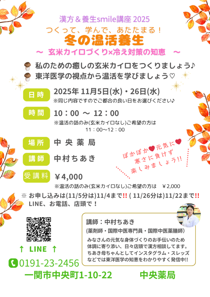 \ 11月の漢方&養生Smile講座のご案内です♪ /