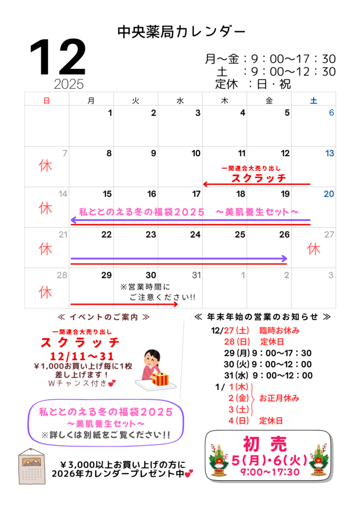 12月のイベント&年末の営業のお知らせ
